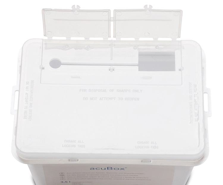 Al tratarse de un contenedor para desecho de agujas profesionales, su capacidad de 3,5 litros resulta adecuada para un uso continuado en consulta, reduciendo la necesidad de cambios constantes y facilitando la organización del material punzante tras cada sesión.