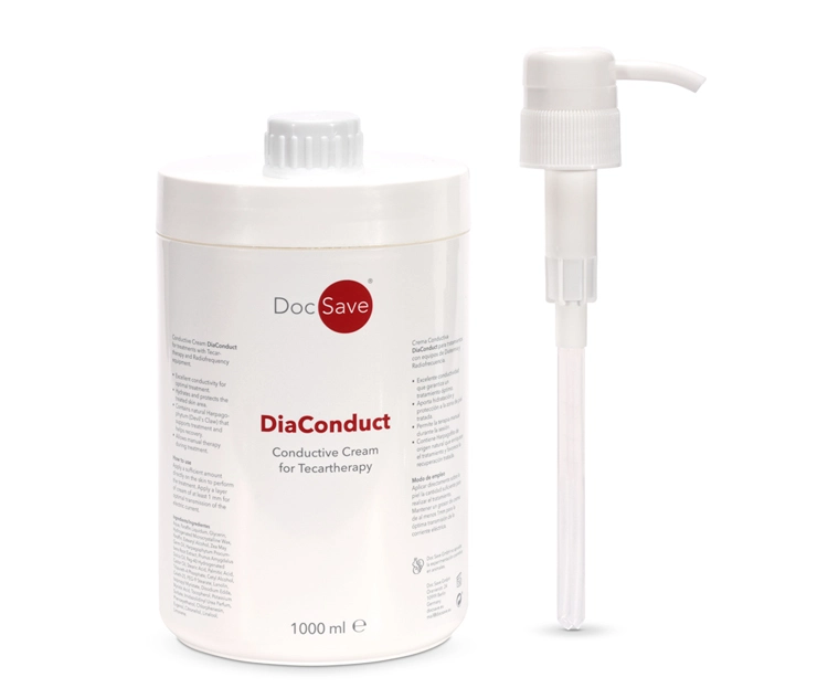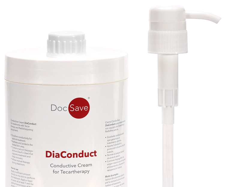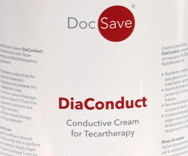 Según la ficha del fabricante, la crema conductora DiaConduct está descrita para tratamientos con equipos de Tecarterapia y Radiofrecuencia, permitiendo además la realización de terapia manual durante la sesión.