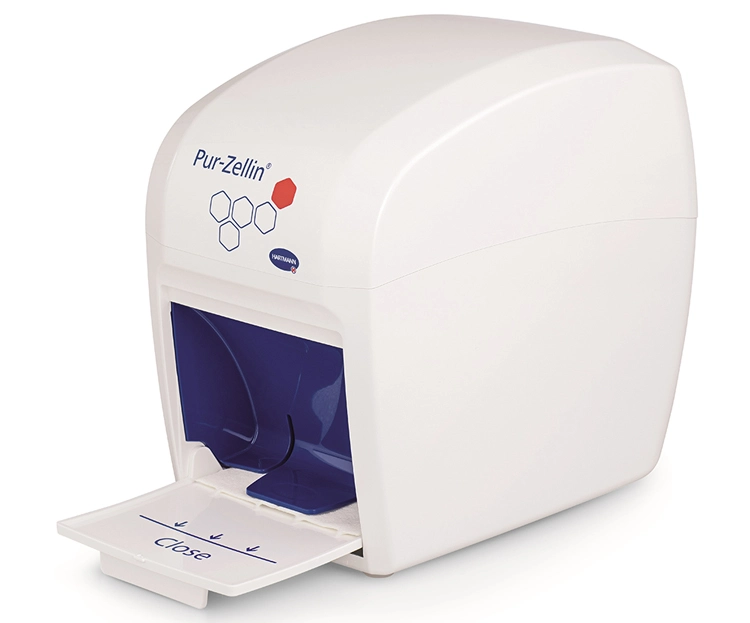 - Compatible con un rollo de 500 toallitas Pur-Zellin, tanto en versión no estéril (Ref. HT1) como estéril (Ref. HT2).
