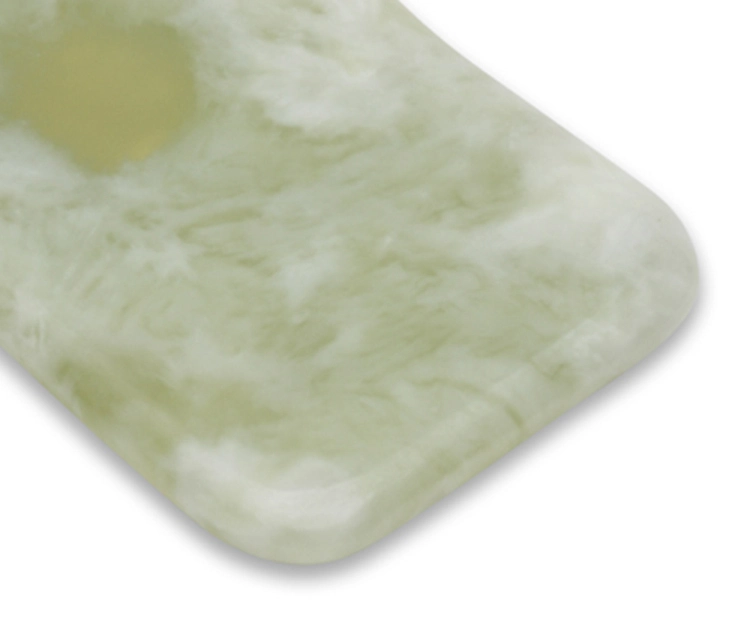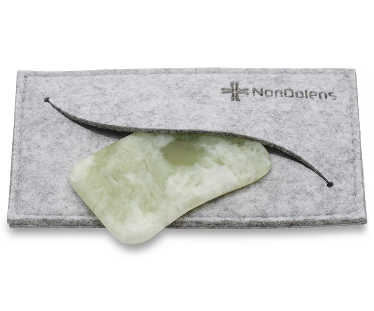Al tratarse de una herramienta de Gua Sha de jade verde de Xiuyan, conserva el tacto característico de la piedra natural, que muchos profesionales valoran tanto por su estética como por la sensación que aporta durante el masaje. En cabina aporta un toque de cuidado extra al ritual, acompañando tus cosméticos habituales y el resto de maniobras que ya utilizas.
