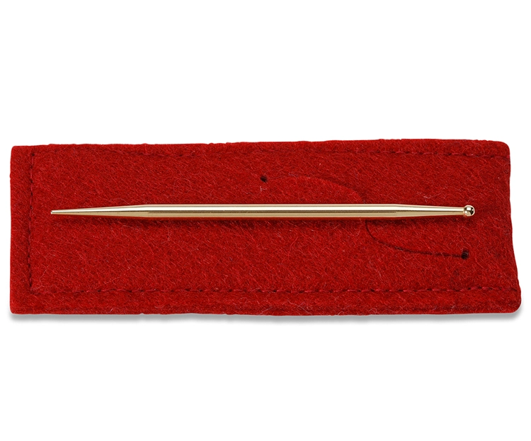 Fabricado en oro macizo 750 (18 kilates), ofrece una sensación de firmeza gracias a su elevada dureza Vickers, que ayuda a evitar que se doble involuntariamente durante el uso. Su diseño combina una bolita en un extremo y una punta cónica aplanada en el otro, aportando versatilidad en la práctica según el estilo y preferencias del profesional.
